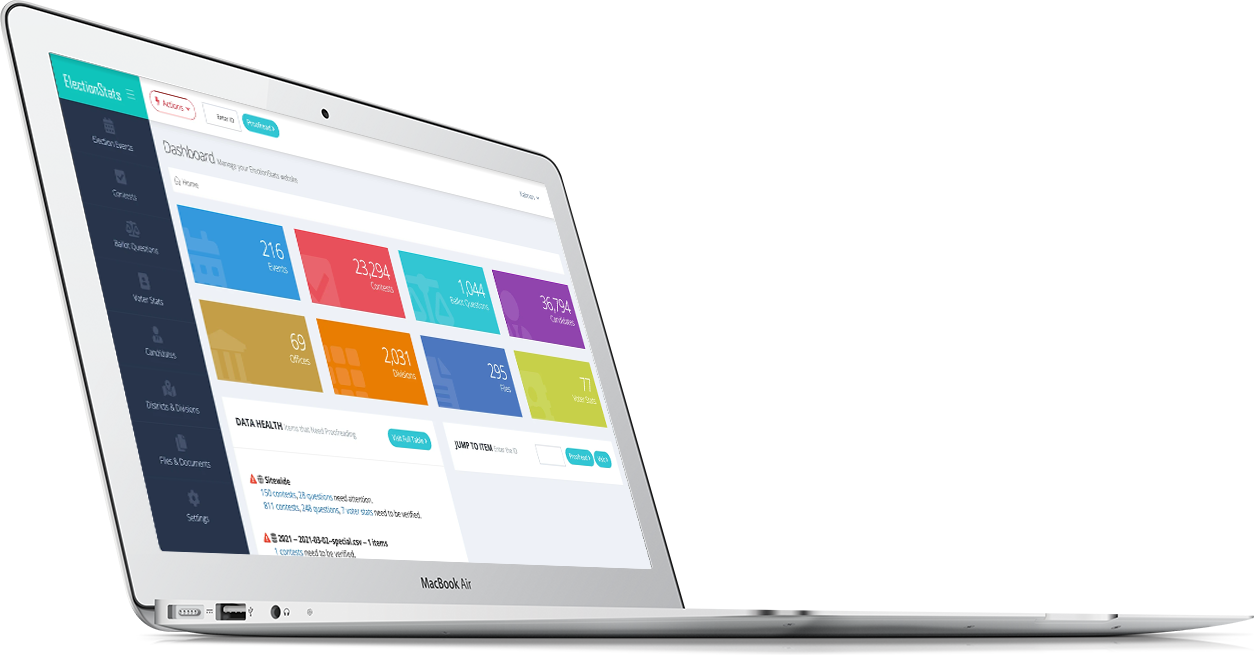New certified election results? Add to your ElectionStats site in minutes in a powerful admin area. Just upload, import, check, and publish.